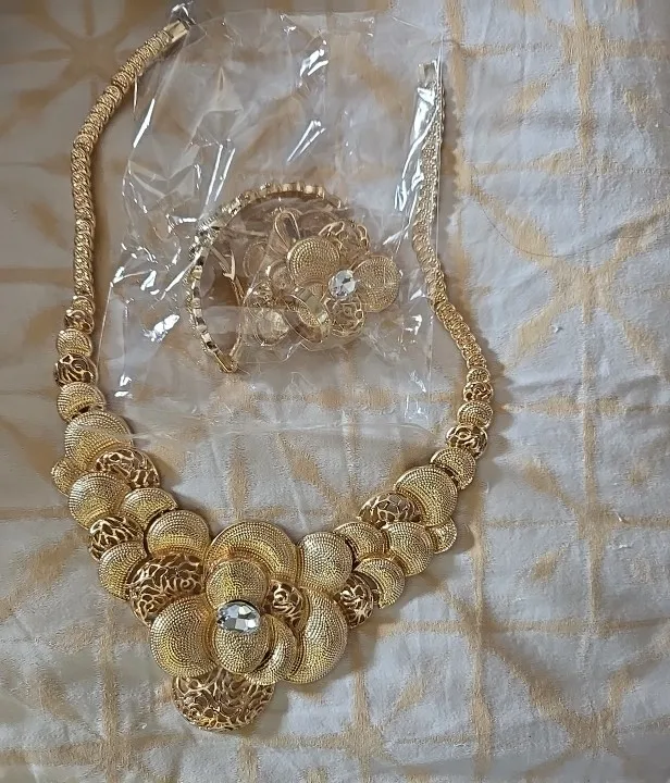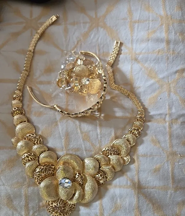 Dubai African Jewelry Sets Luxury Wedding & Party Style - Discover sophisticated elegance with this curated African jewelry ensemble, expertly designed for life's most memorable moments. This complete four-piece set includes a matching necklace, bracelet, earrings, and ring, each meticulously crafted from lustrous crystal and durable zinc alloy. Available in radiant gold, versatile silver, or striking multi-tone finishes, the collection features delicate botanical patterns that capture romantic charm. Whether you're celebrating a wedding, engagement, anniversary, or special event, this jewelry set delivers refined style suitable for women, maidens, and girls seeking timeless pieces that complement any formal occasion.